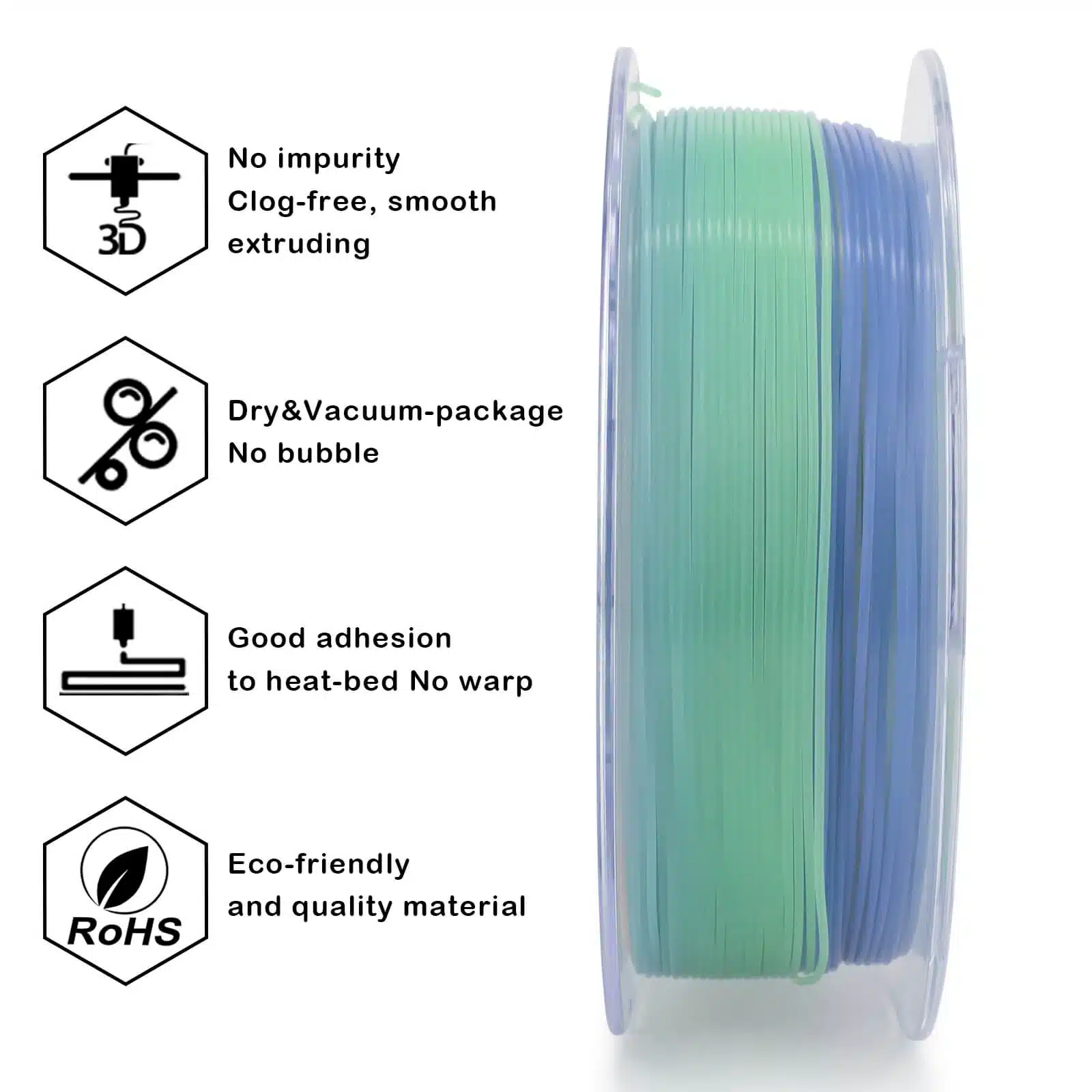 Osobine materijala: svetli u mraku, rainbow prelaz boja, lako štampanje