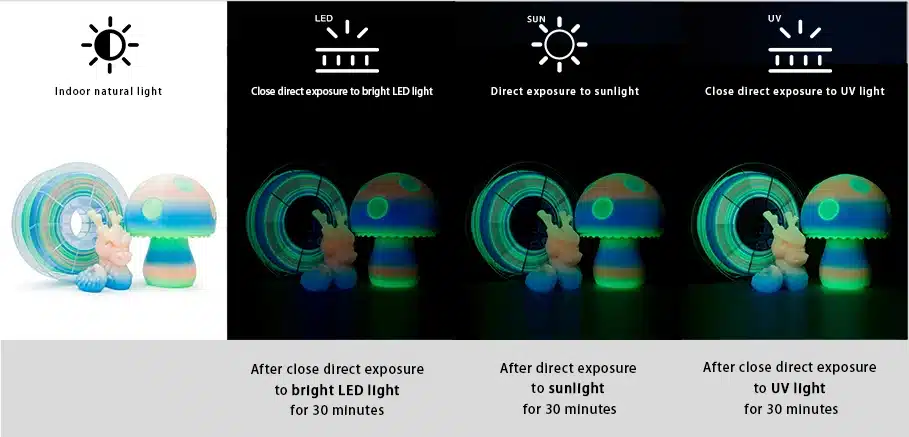 ZIRO Glow in Dark PLA Filament 1.75 mm – Rainbow