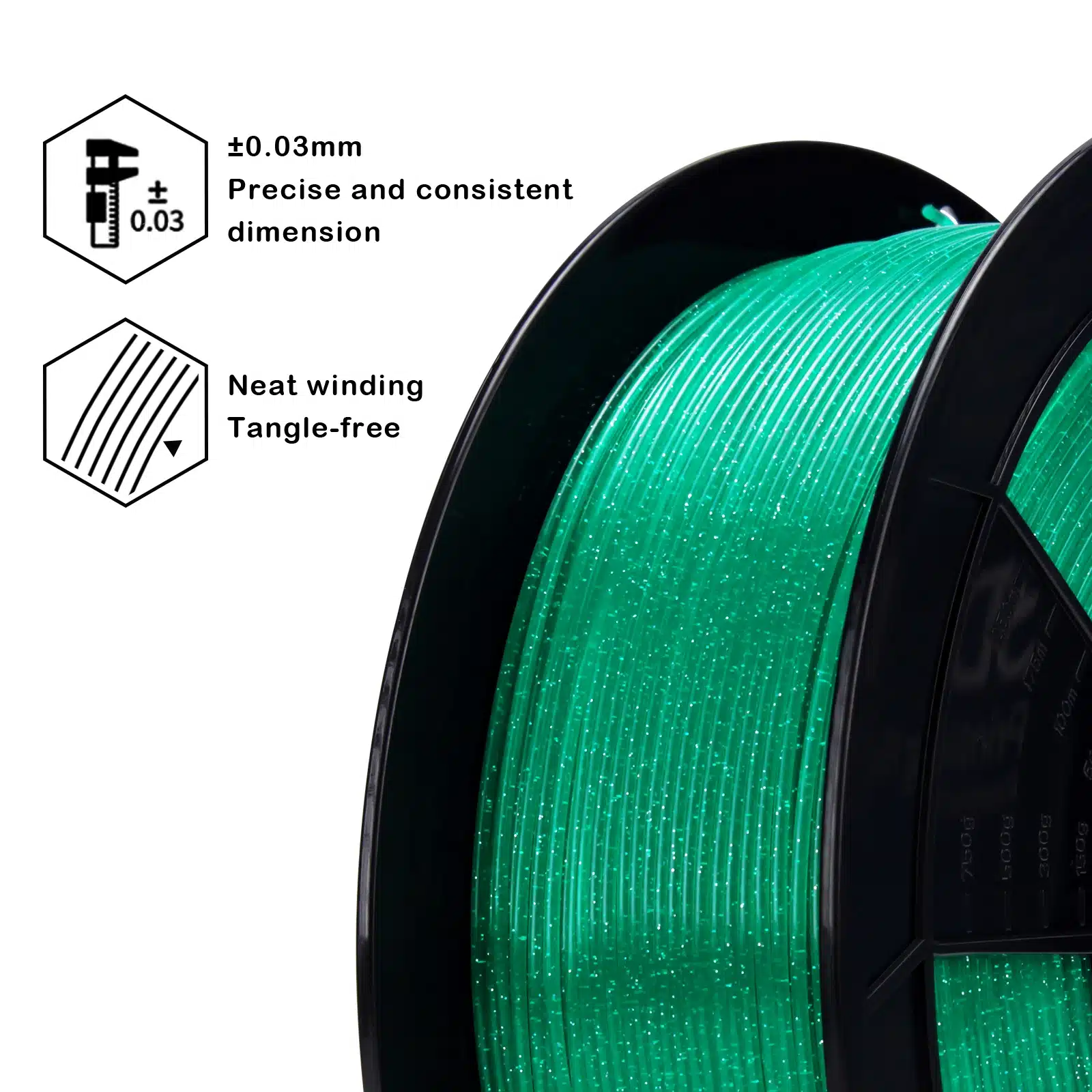 Kao i svi PLA filamenti, i Glitter Twinkling PLA Green je: