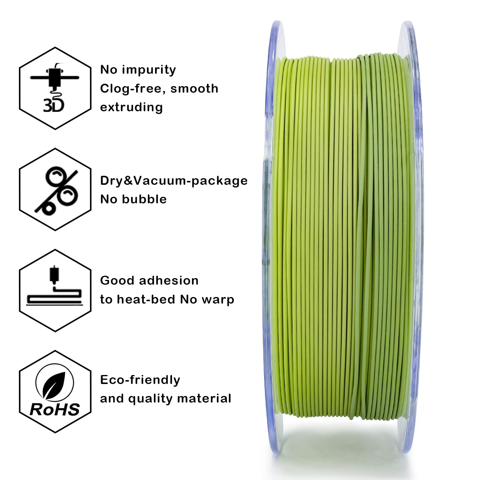 ZIRO Gradient Matte PLA Matcha filament proizvodi se sa tolerancijom prečnika od ±0.03 mm, što omogućava stabilan protok materijala kroz ekstruder i ravnomerno formiranje slojeva.