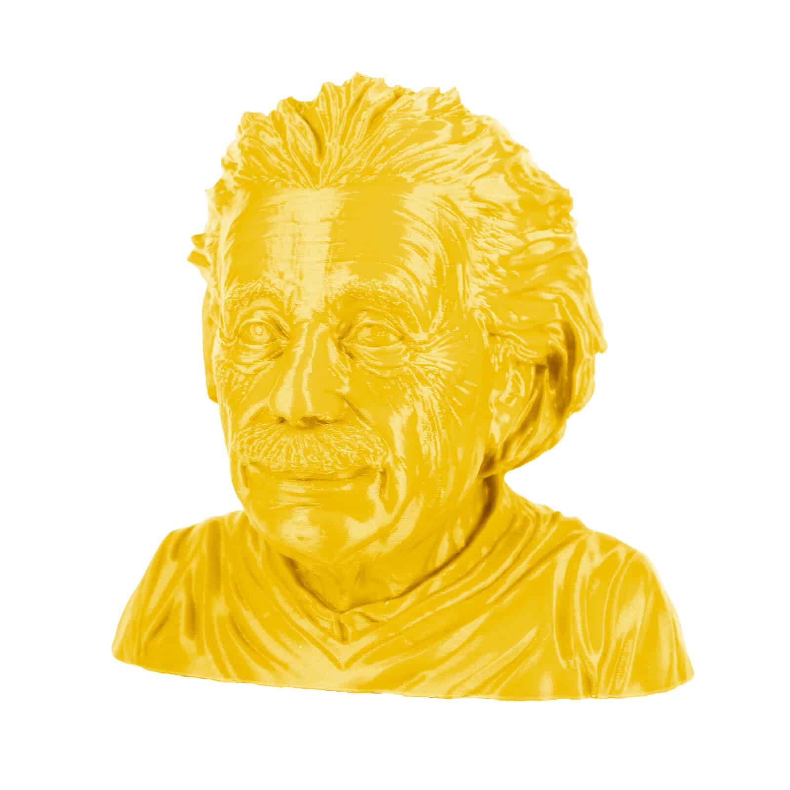 Metal PLA Gold štampa se kao standardni PLA — bez mirisa, bez grejane komore, sa odličnom prionljivošću na podlogu. Kompatibilan je sa standardnim mesingačnim mlaznicama. Finalna obrada poput finog brušenja ili lakiranja može dodatno pojačati efekat zlata.