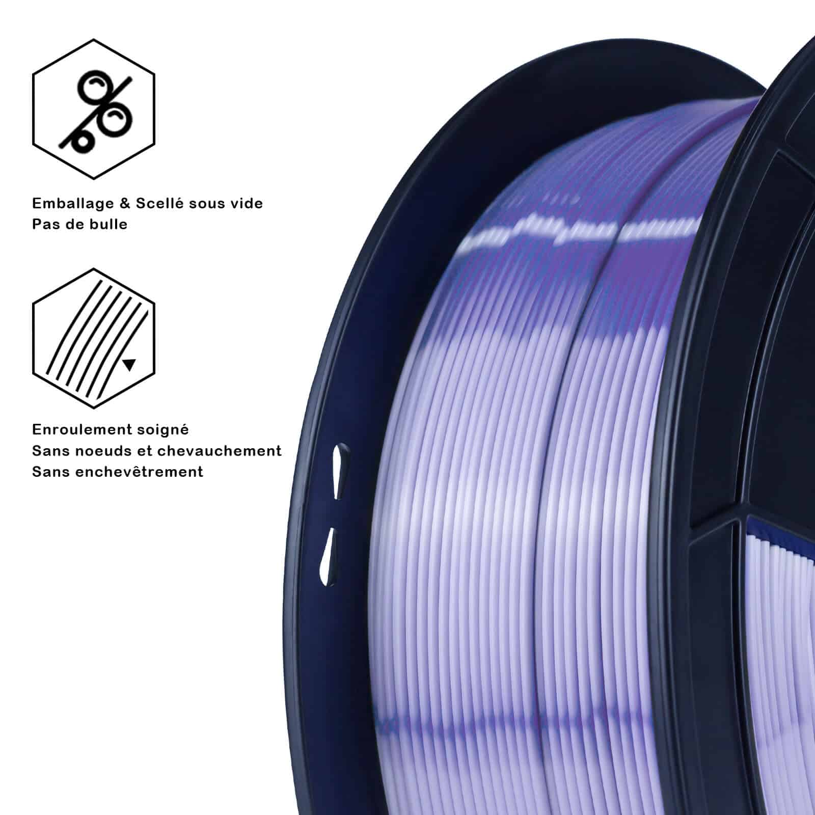 ZIRO Silk PLA Violet filament donosi izuzetno izražen vizuelni efekat zahvaljujući svilenkastom odsjaju u prelepoj ljubičastoj nijansi. Ovaj filament je namenjen korisnicama koje žele da njihovi modeli ostave snažan estetski utisak – bilo da se radi o statuama, figurama, dekoracijama ili luksuznom pakovanju.