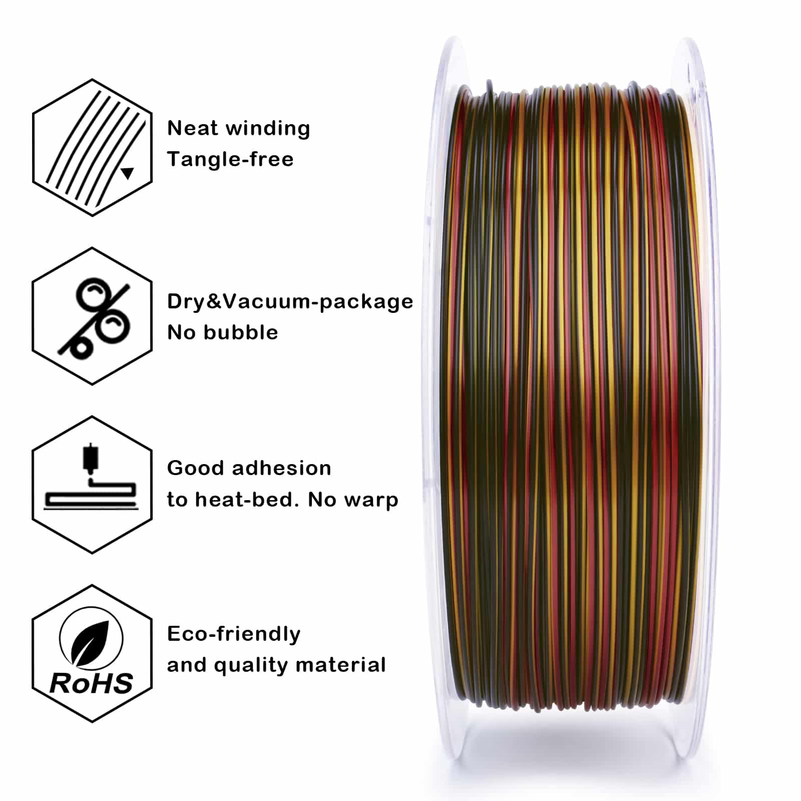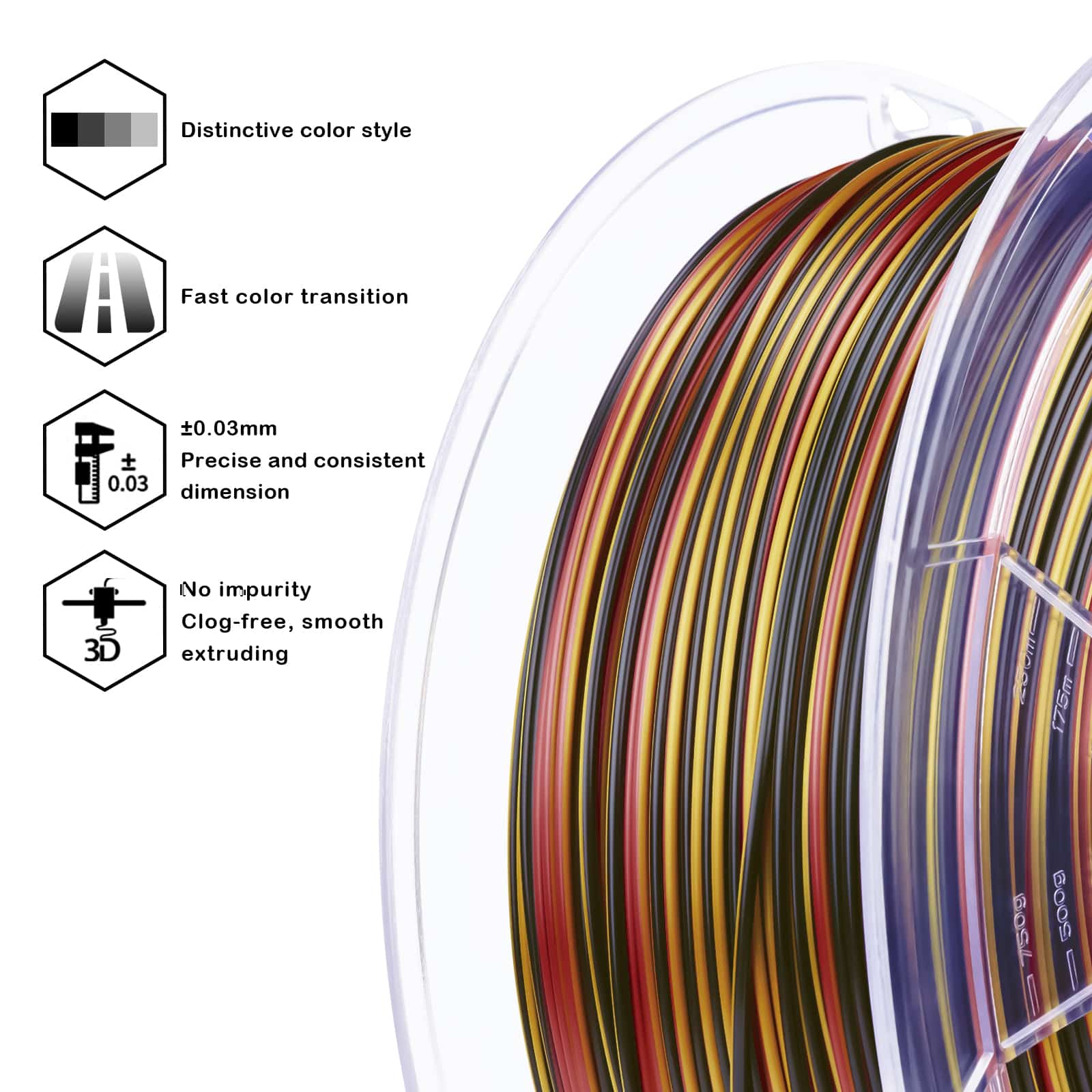 Stripes silk pla gilded stripes filament menja boju relativno brzo duž filamenta, pa modeli mogu dobiti višebojni izgled čak i kada su srednje veličine.