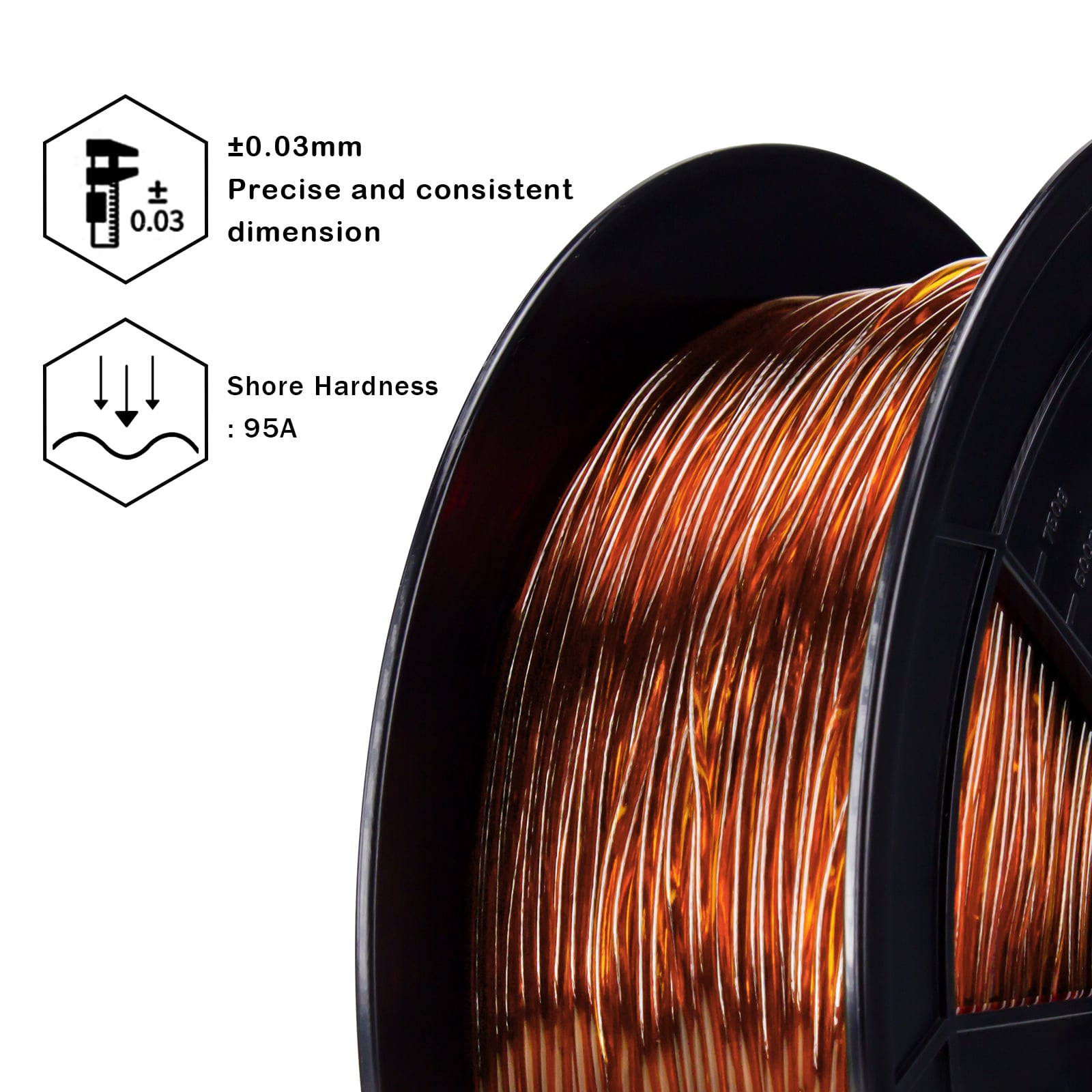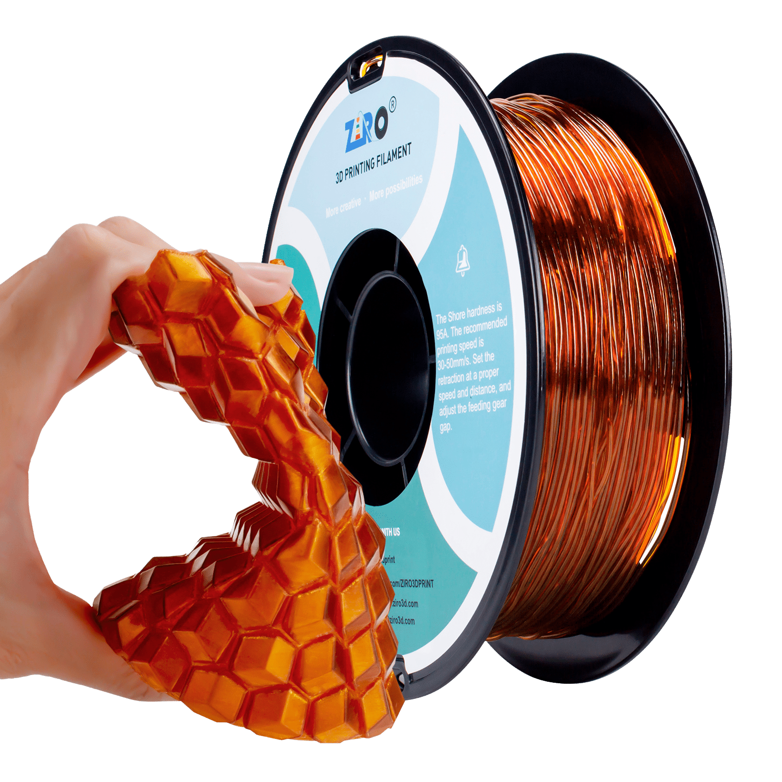 ZIRO TPU Filament 1.75 mm – Translucent Caramel (Shore 95A)