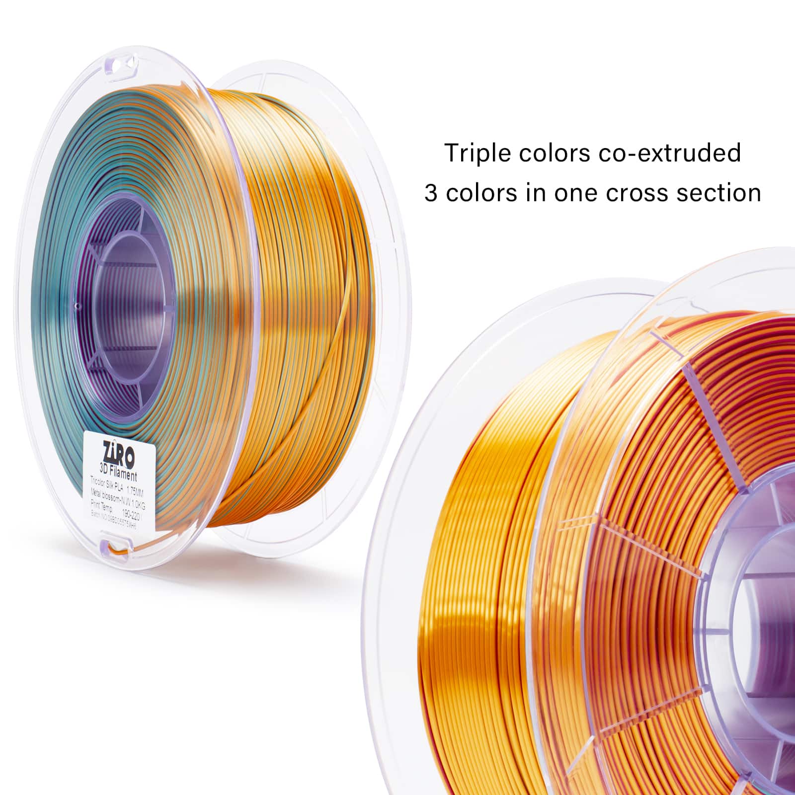 ZIRO Tri-Color Silk PLA Filament 1.75 mm – Metal Blossom