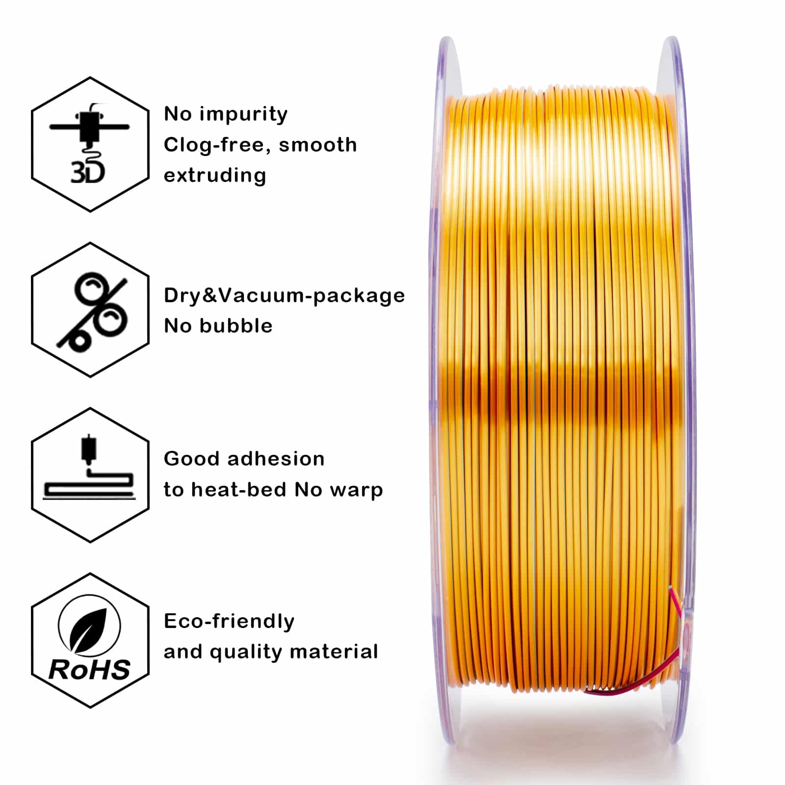 ZIRO Tri-Color Silk PLA filament dolazi na uredno namotanom kartonskom koturu, kompatibilnom sa većinom savremenih FDM 3D štampača. Odmotavanje je ravnomerno i stabilno, bez zaplitanja, što omogućava siguran rad i kod dugotrajnih printova.